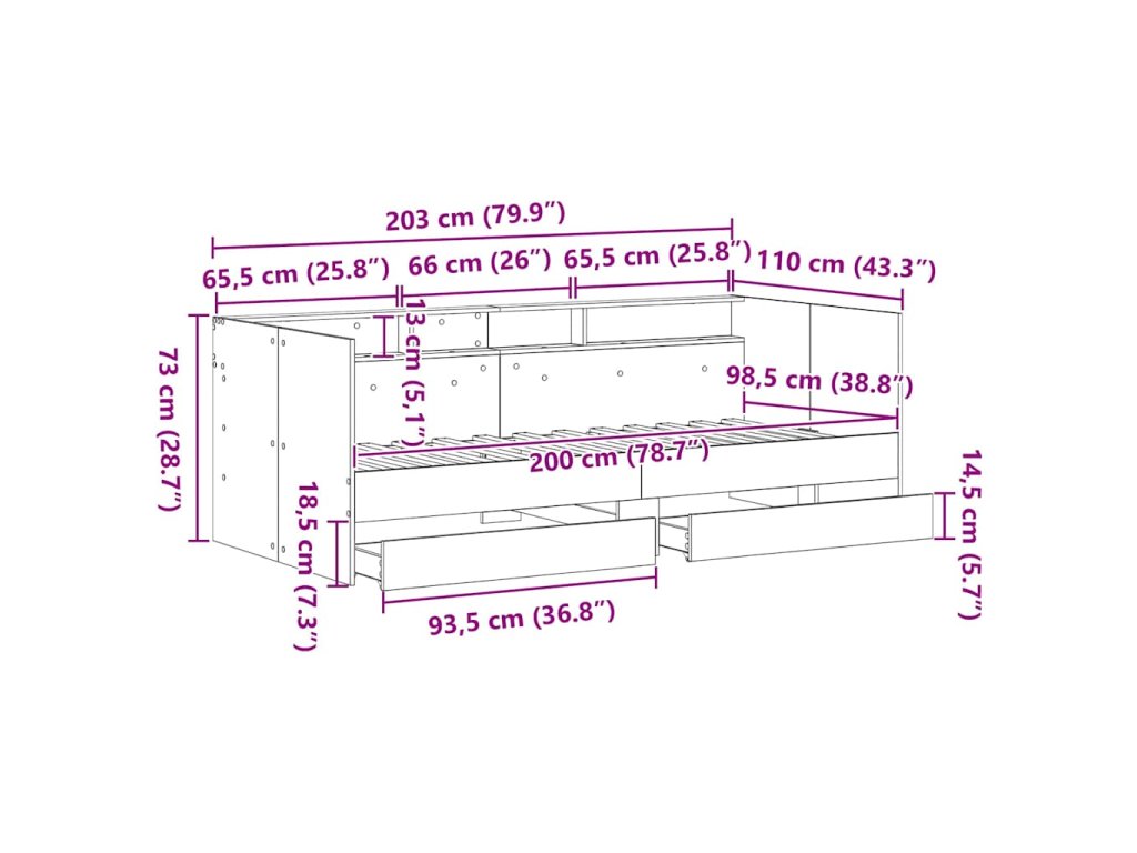 Toto rustikální denní lůžko z inženýrského dřeva má zásuvky a skvěle zapadá do moderních prostor. Jeho jednoduché linie a minimální design jsou ideální pro každou ložnici, co preferuje jednoduchost. Může se používat jako pohovka během dne a jako pohodlná postel v noci - perfektní pro malé byty. Jeho nenáročný styl a pevná konstrukce umožňují mnoho možností dekorace, takže si ho můžete přizpůsobit podle sebe.