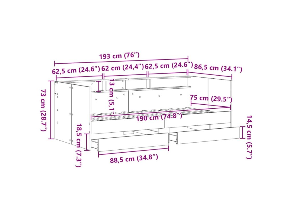 Toto rustikální denní lůžko z inženýrského dřeva má zásuvky a skvěle zapadá do moderních prostor. Jeho jednoduché linie a minimální design jsou ideální pro každou ložnici, co preferuje jednoduchost. Může se používat jako pohovka během dne a jako pohodlná postel v noci - perfektní pro malé byty. Jeho nenáročný styl a pevná konstrukce umožňují mnoho možností dekorace, takže si ho můžete přizpůsobit podle sebe.
