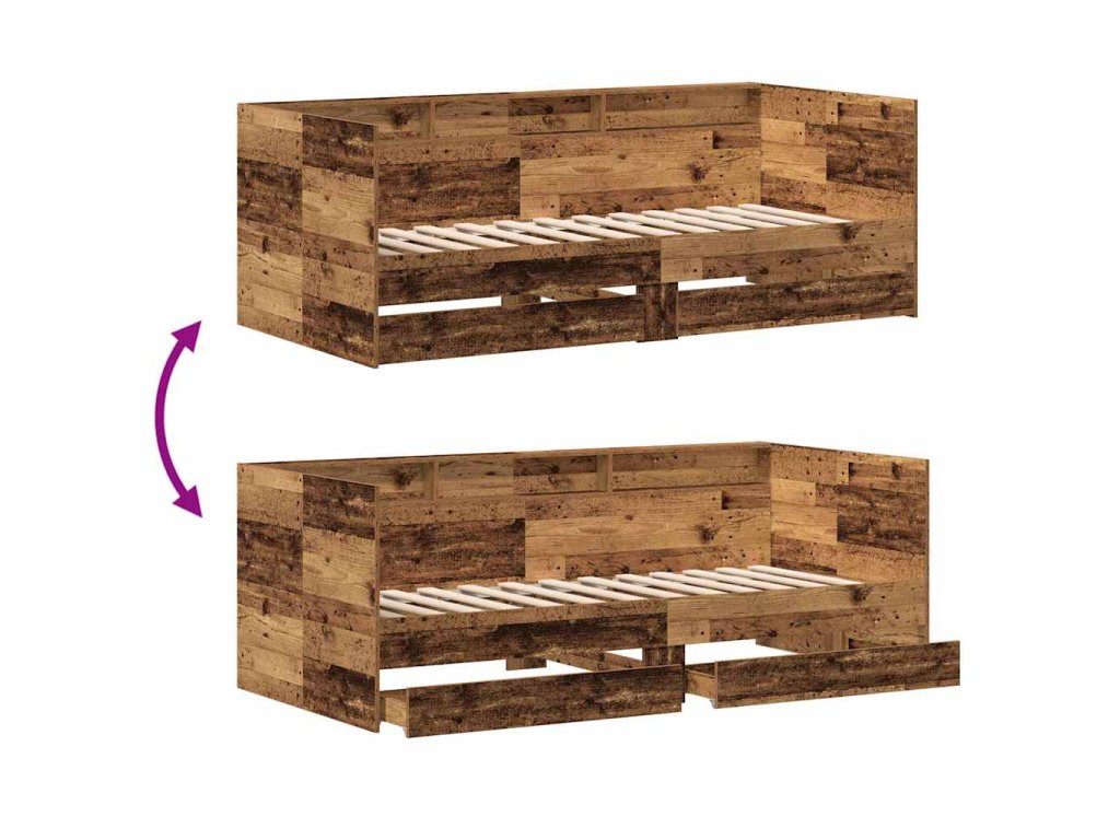 Toto rustikální denní lůžko z inženýrského dřeva má zásuvky a skvěle zapadá do moderních prostor. Jeho jednoduché linie a minimální design jsou ideální pro každou ložnici, co preferuje jednoduchost. Může se používat jako pohovka během dne a jako pohodlná postel v noci - perfektní pro malé byty. Jeho nenáročný styl a pevná konstrukce umožňují mnoho možností dekorace, takže si ho můžete přizpůsobit podle sebe.