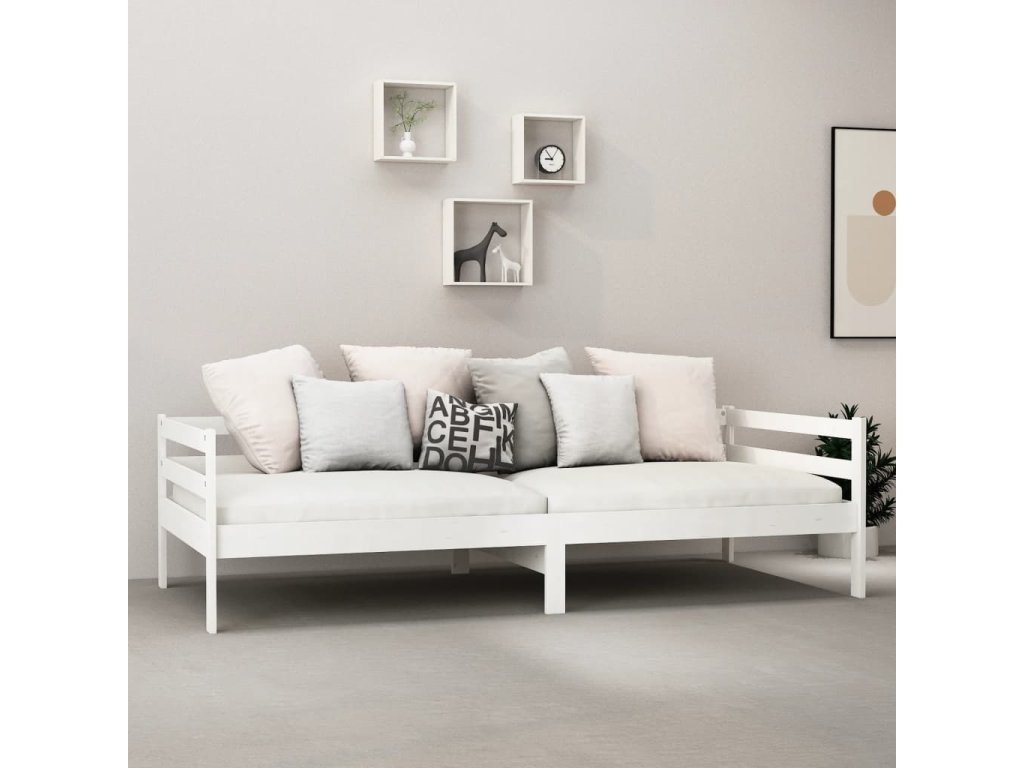 Denní postel s matrací 90 x 200 cm bílá masivní borové dřevo 3083570
