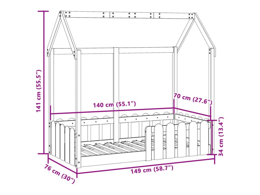 - Hravý design domečku: Tento hravý rám postele inspirovaný domečkem promění čas spánku v rozmarné dobrodružství vašich dětí. Poskytuje útulné místo na spaní a jedinečný prostor pro nápadité hry.