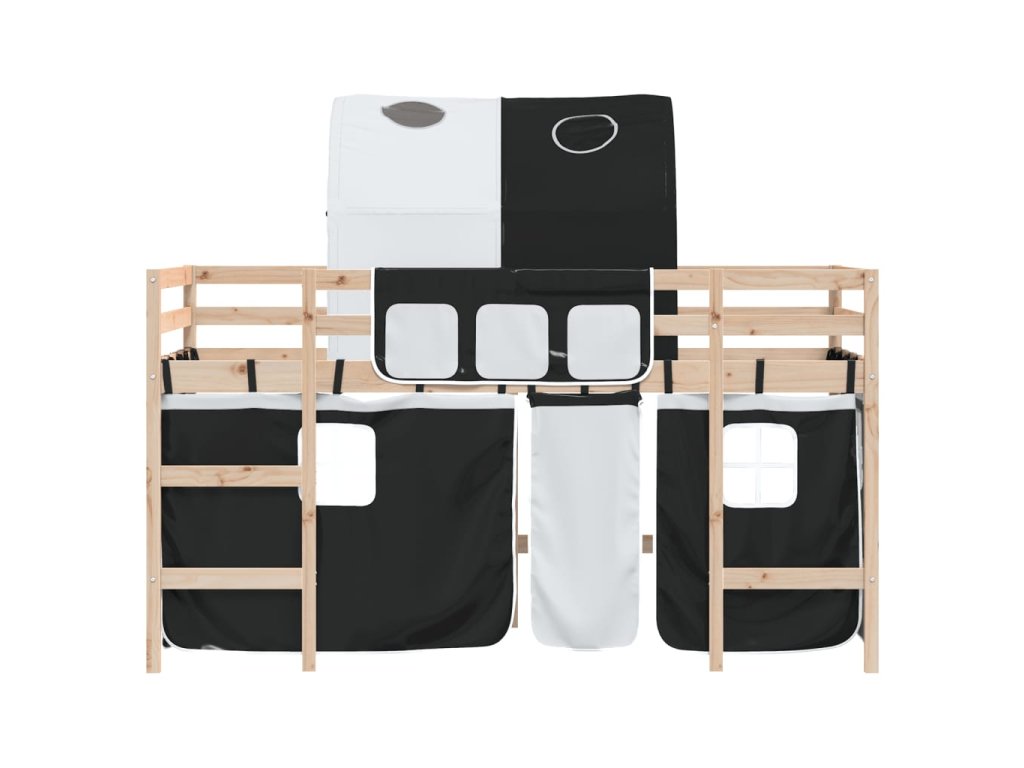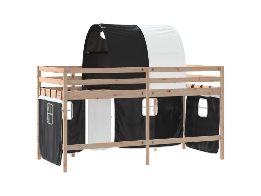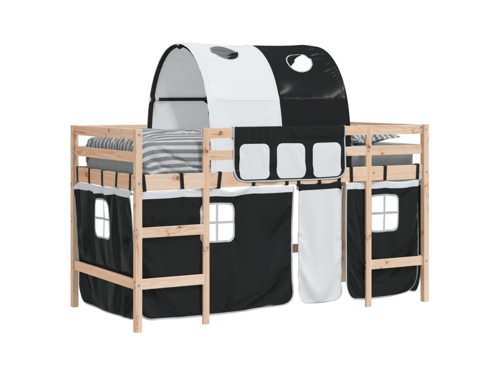 Dětská patrová postel s tunelem bílá a černá 90x190 cm borovice 3207000