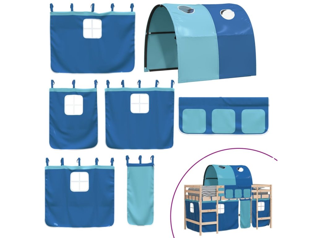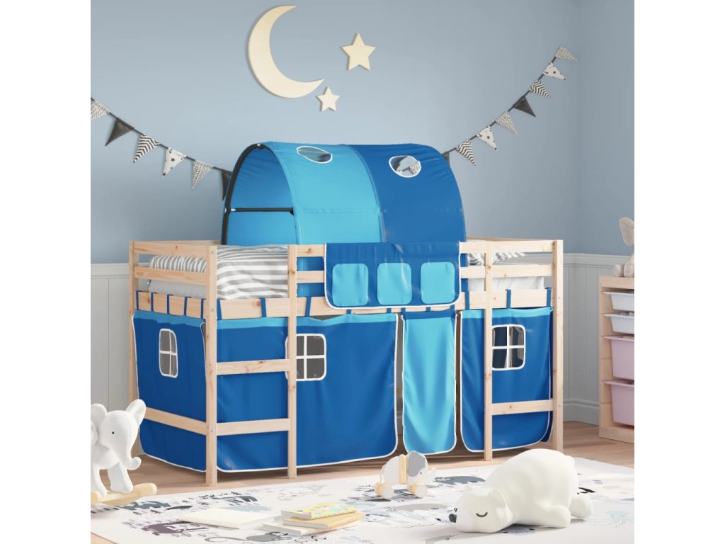 Dětská patrová postel s tunelem modrá 80x200 cm masiv borovice 3206983