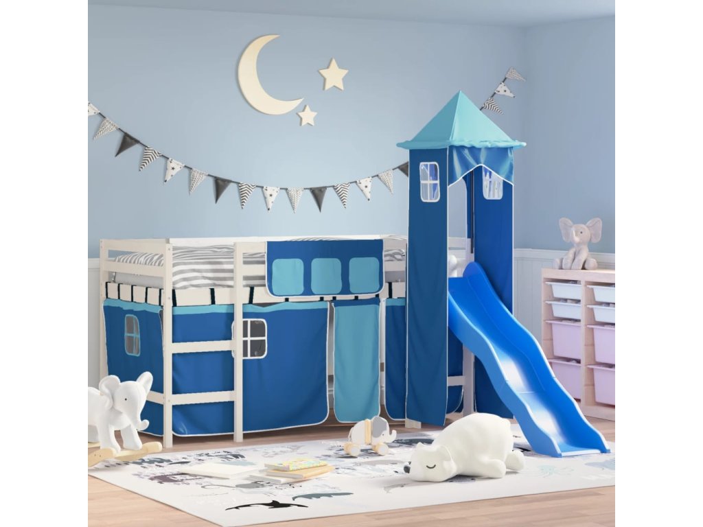 Dětská patrová postel s věží modrá 80 x 200 cm masiv borovice 3207067