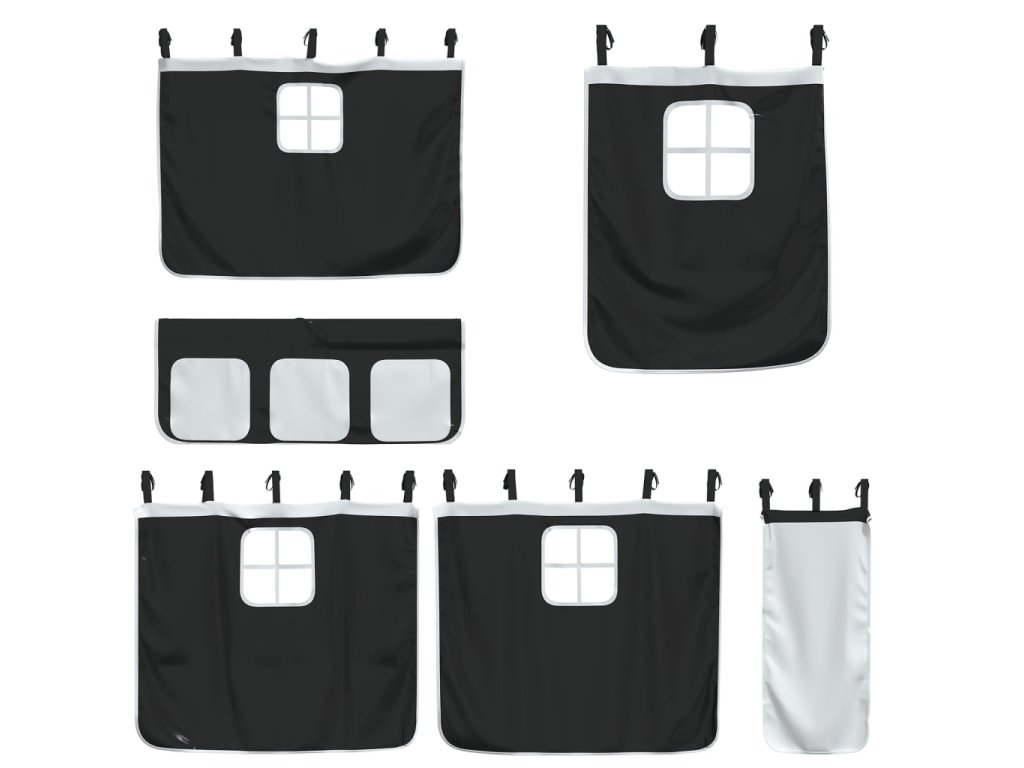 Dětská patrová postel se závěsy bílá a černá 90x200 cm borovice 3206964