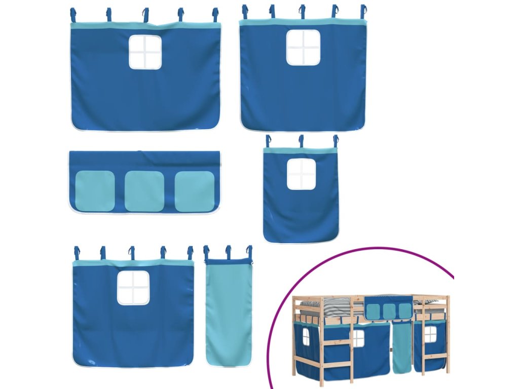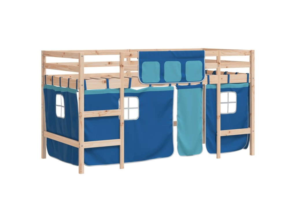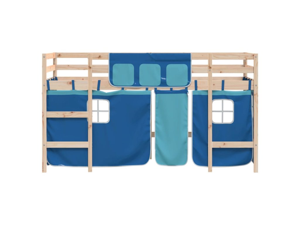 Dětská patrová postel se závěsy modrá 90 x 190 cm borovice 3206974