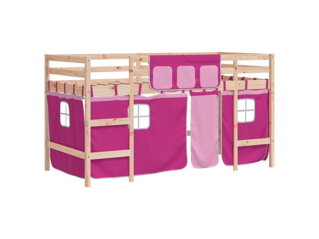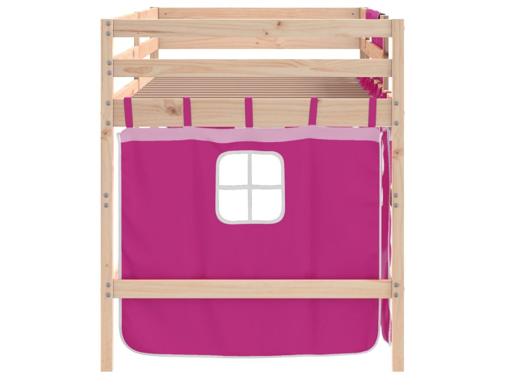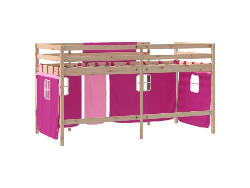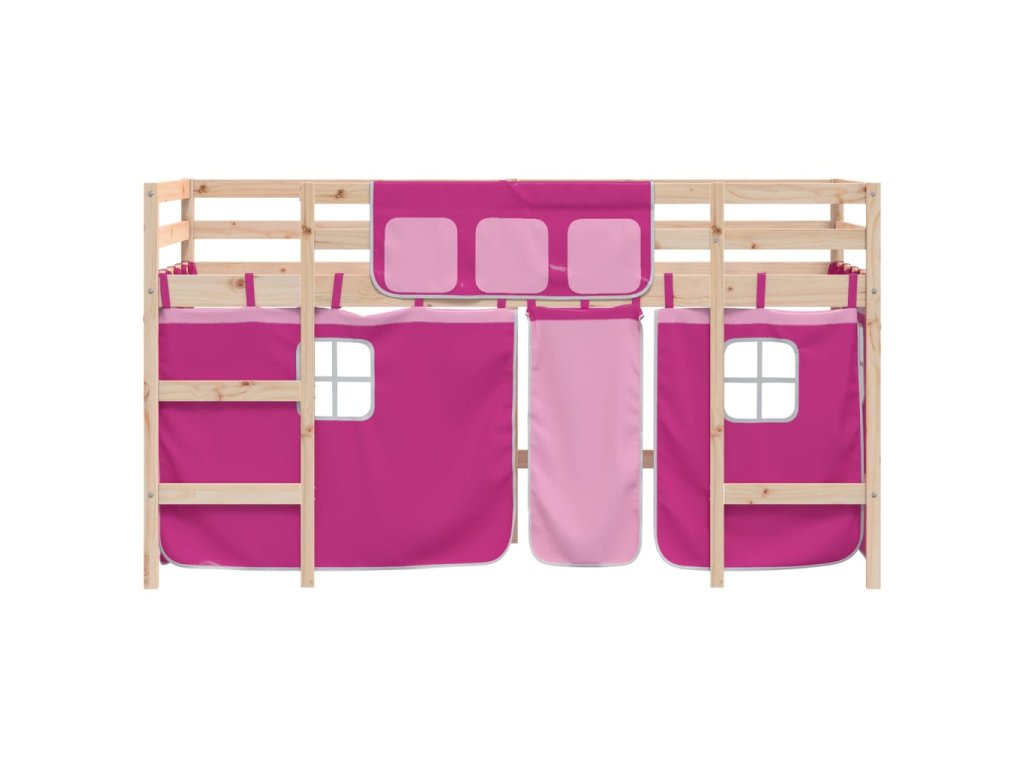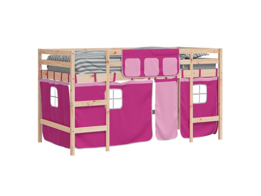 Dětská patrová postel se závěsy růžová 80 x 200 cm borovice 3206957