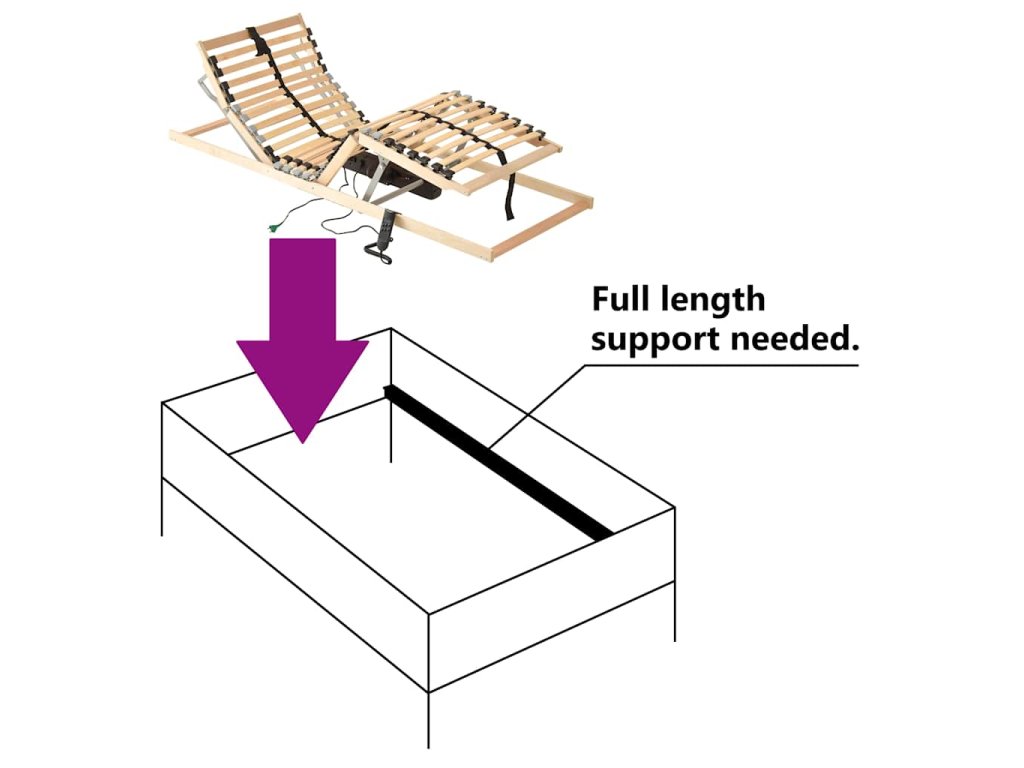 Rošt postele s rámem z masivního bukového dřeva a břízovými lamelami je robustní a odolný. Sedm komfortních zón poskytuje vašemu tělu optimální podporu. Oba konce lamel jsou na místě upevněné gumovými uzávěry SBS pro lepší stabilitu celé konstrukce. S pomocí 4 nastavitelných dvojitých lamel ve středové zóně můžete uzpůsobit pevnost roštu svým potřebám. Oblasti pod hlavou a pod nohami jsou nastavitelné příručním ovladačem pro vaše pohodlí.