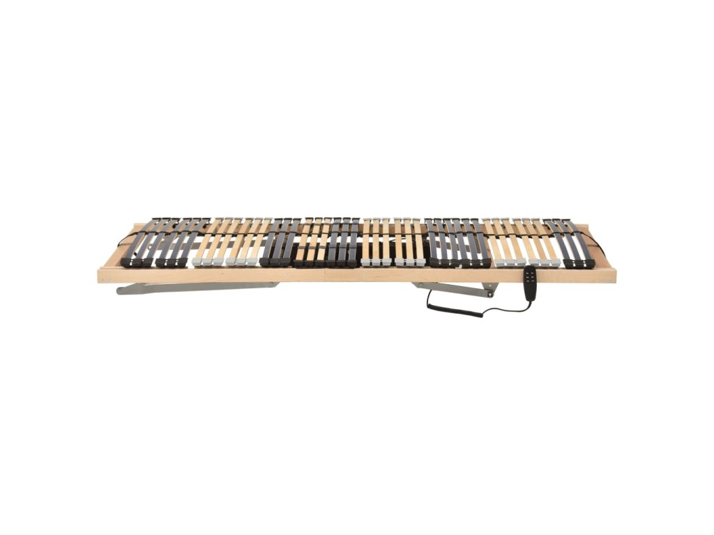 Rošt postele s rámem z masivního bukového dřeva a břízovými lamelami je robustní a odolný. Sedm komfortních zón poskytuje tělu optimální podporu. Oba konce lamel jsou na místě upevněné gumovými uzávěry SBS pro lepší stabilitu celé konstrukce. S pomocí 6 nastavitelných dvojitých lamel ve středové zóně můžete uzpůsobit pevnost roštu svým potřebám. Oblasti pod hlavou a pod nohami jsou nastavitelné příručním ovladačem pro vaše pohodlí.
