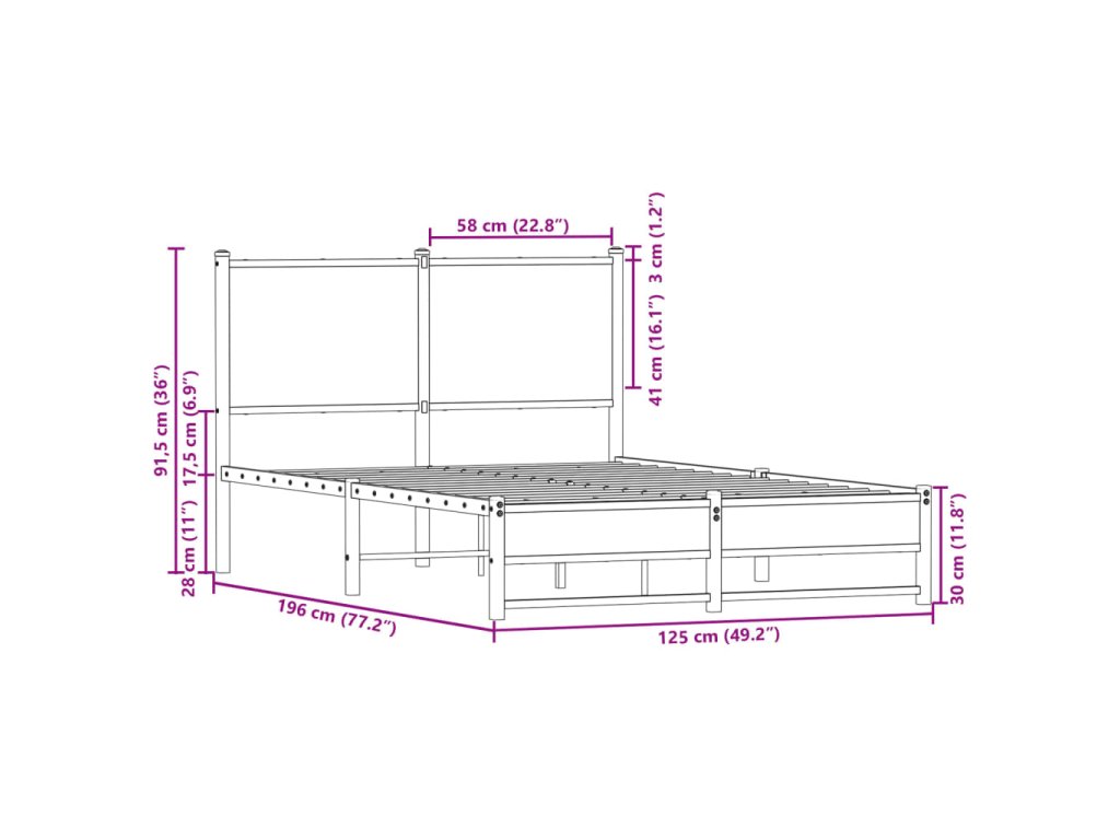 Kovový rám postele bez matrace dub sonoma 120 x 190 cm 4007883
