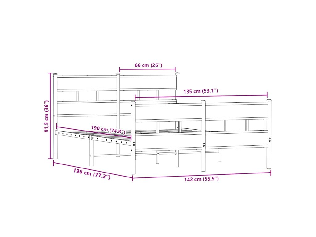 Kovový rám postele bez matrace dub sonoma 135 x 190 cm 4017119