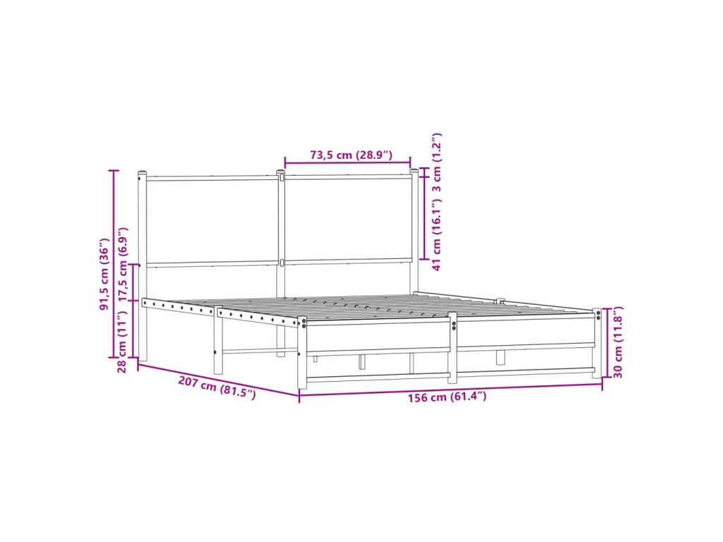 Kovový rám postele bez matrace dub sonoma 150 x 200 cm 4007888