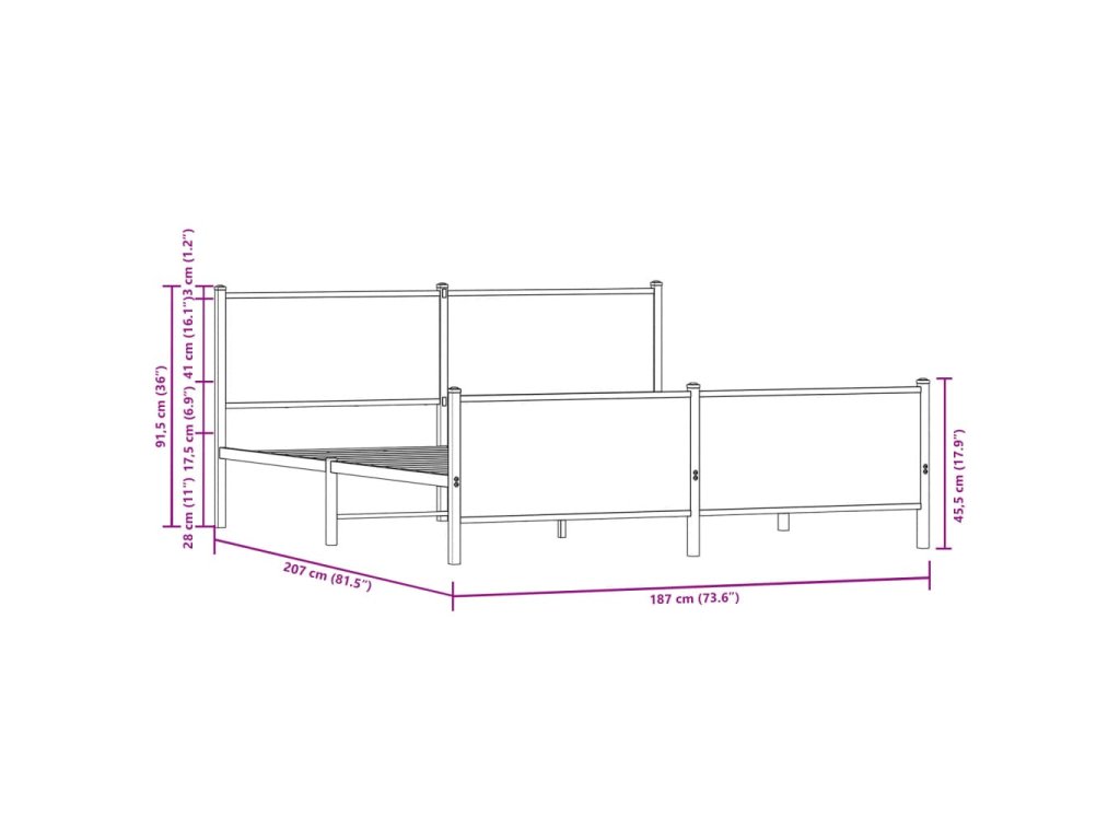 Kovový rám postele bez matrace dub sonoma 180 x 200 cm 3301364
