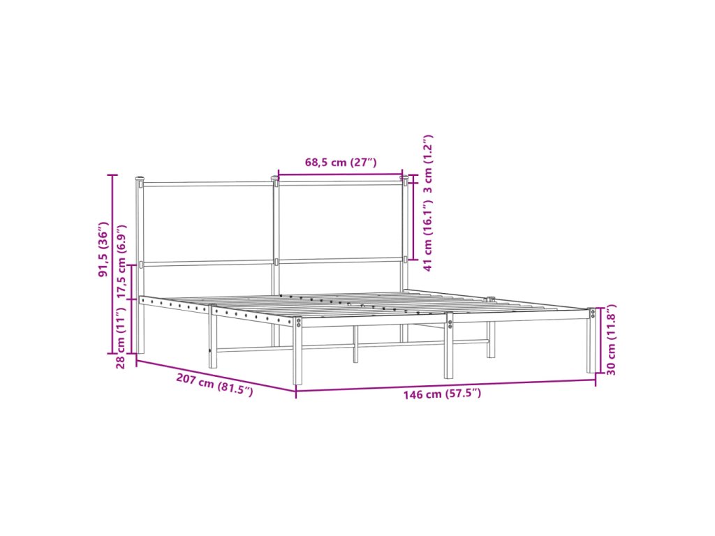 Kovový rám postele bez matrace hnědý dub 140 x 200 cm 4007766