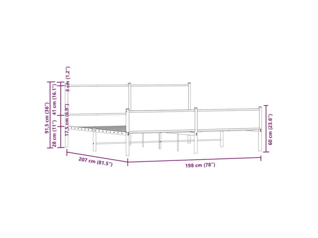 Kovový rám postele bez matrace hnědý dub 193 x 203 cm 3301417