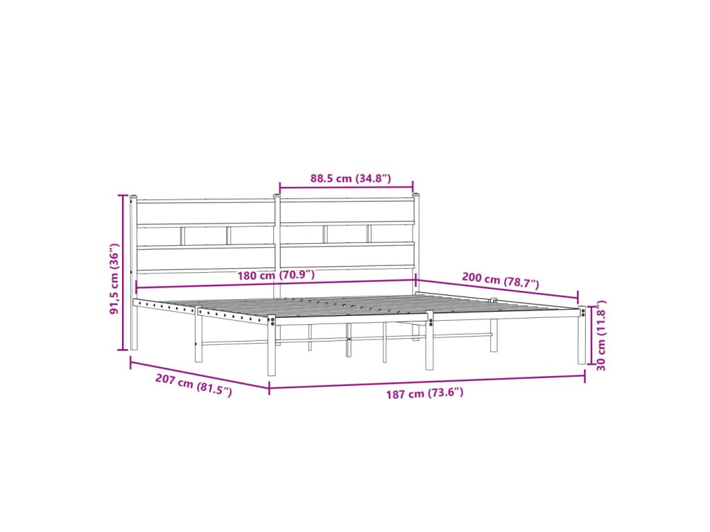 - Vhodné rozměry matrace: 180 x 200 cm (Š x D) (matrace není součástí balení)