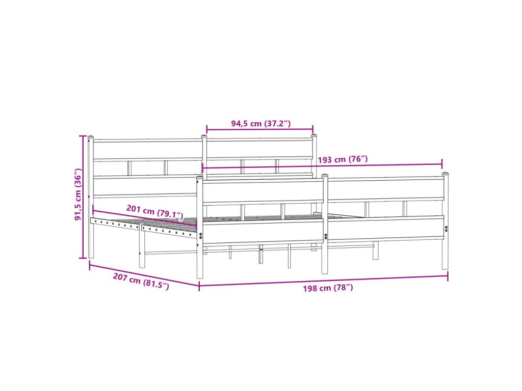 Kovový rám postele bez matrace kouřový dub 193 x 203 cm 3308468