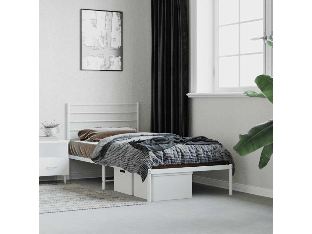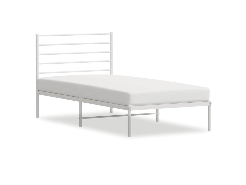 Kovový rám postele bez matrace s čelem bílý 75 x 190 cm 352358