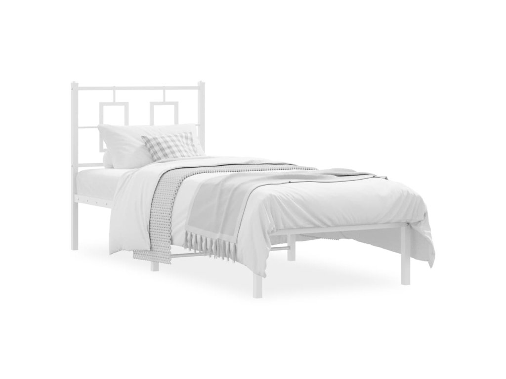Kovový rám postele bez matrace s čelem bílý 75 x 190 cm 374280