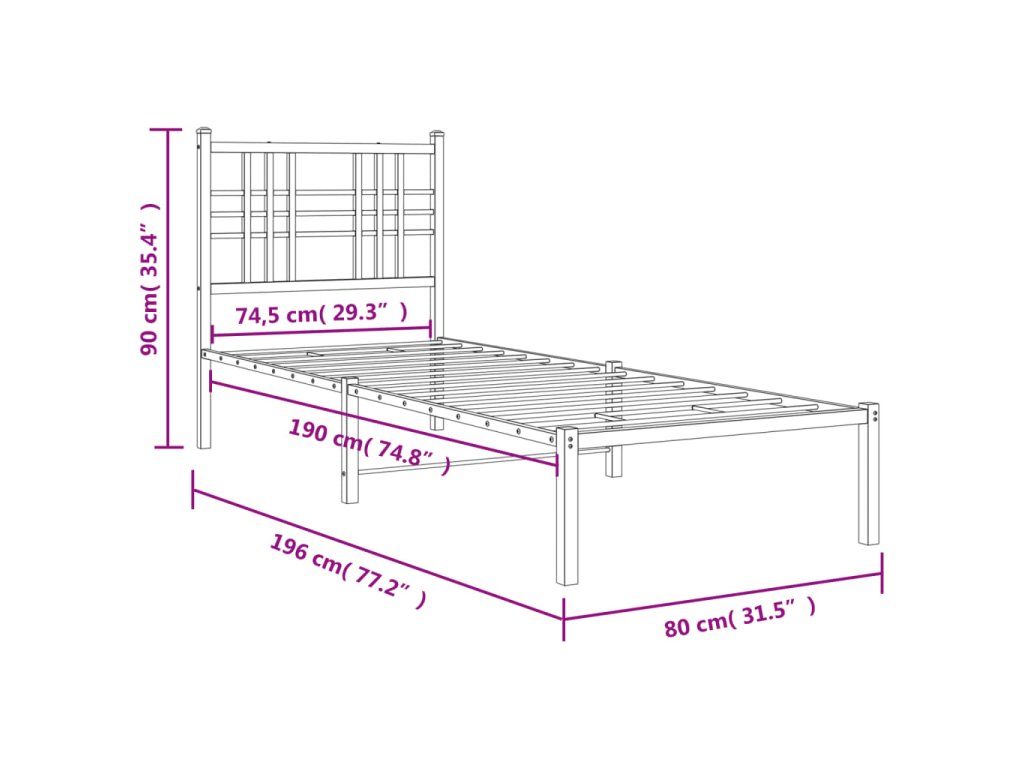 Kovový rám postele bez matrace s čelem bílý 75 x 190 cm 376363