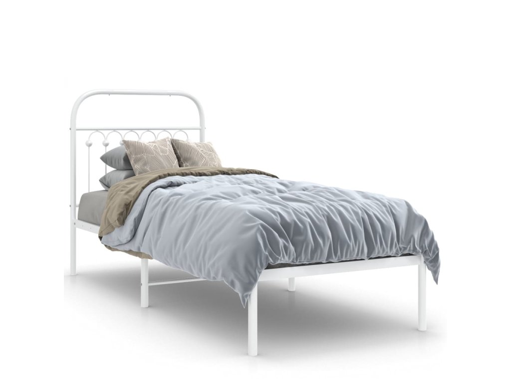 Kovový rám postele bez matrace s čelem bílý 75 x 190 cm 376639