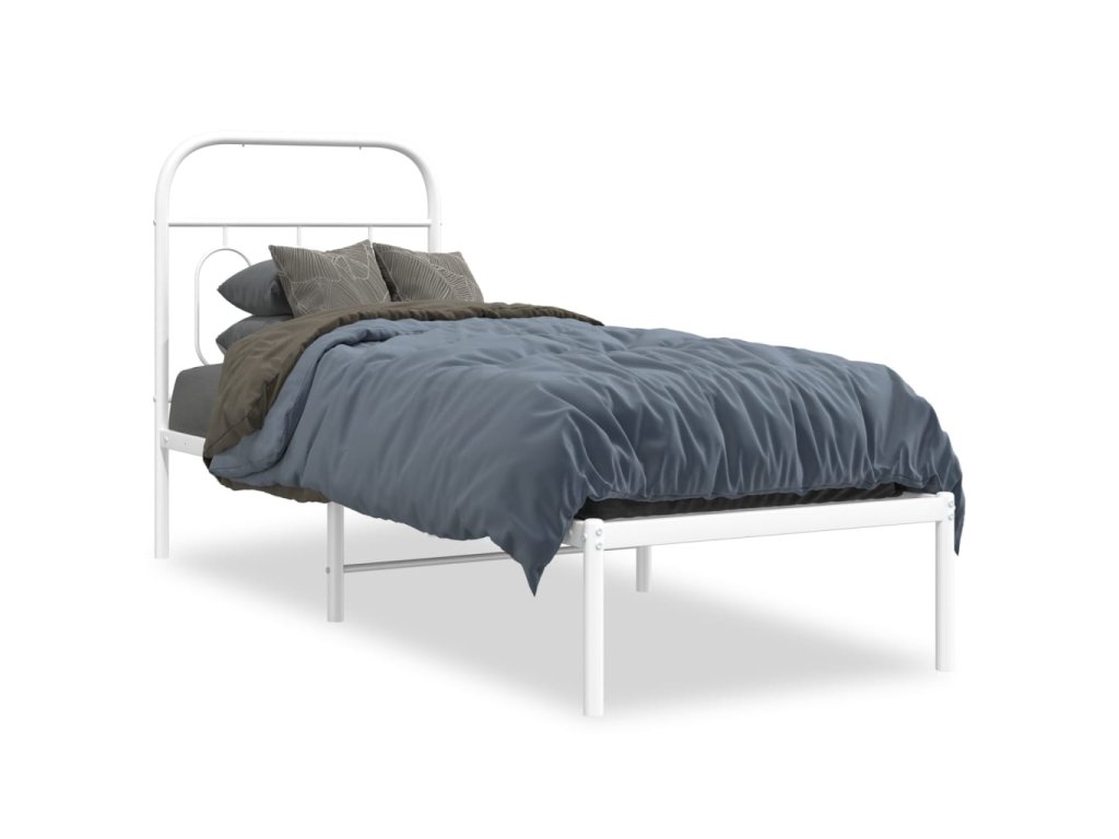 Kovový rám postele bez matrace s čelem bílý 75 x 190 cm 377156