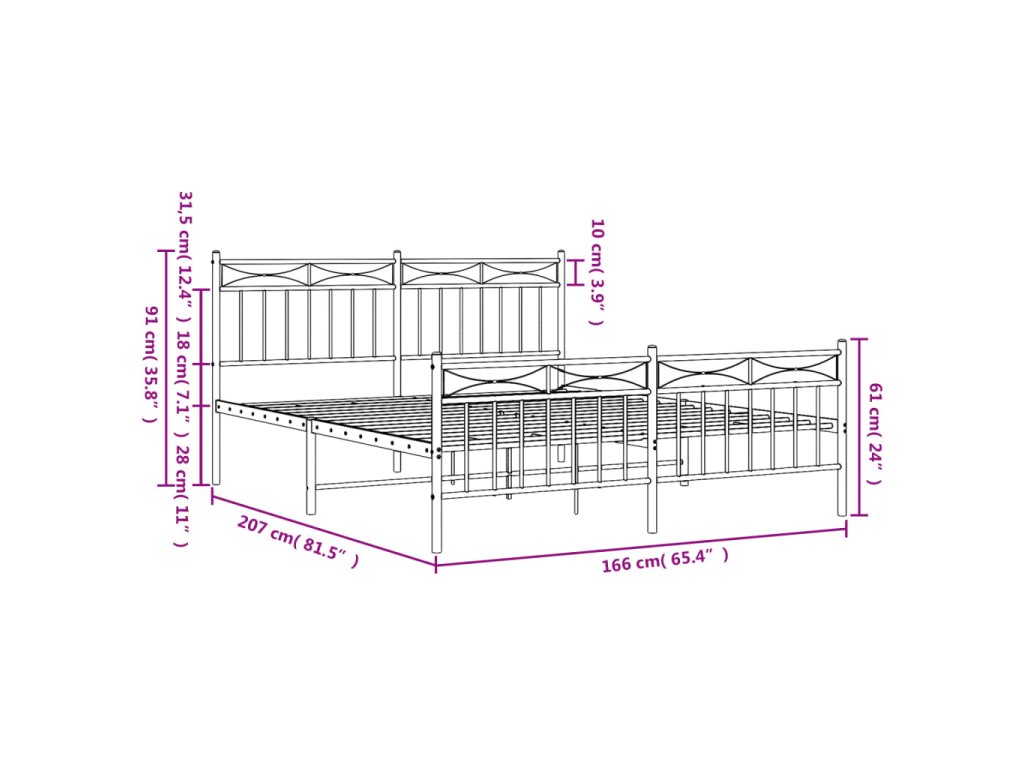 Kovový rám postele bez matrace s nožním čelem černý 160x200 cm 373712