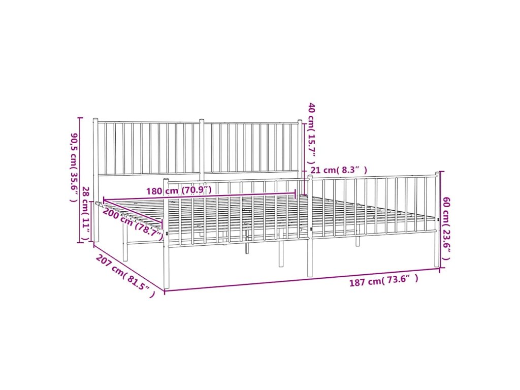 Kovový rám postele bez matrace s nožním čelem černý 180x200 cm 350886
