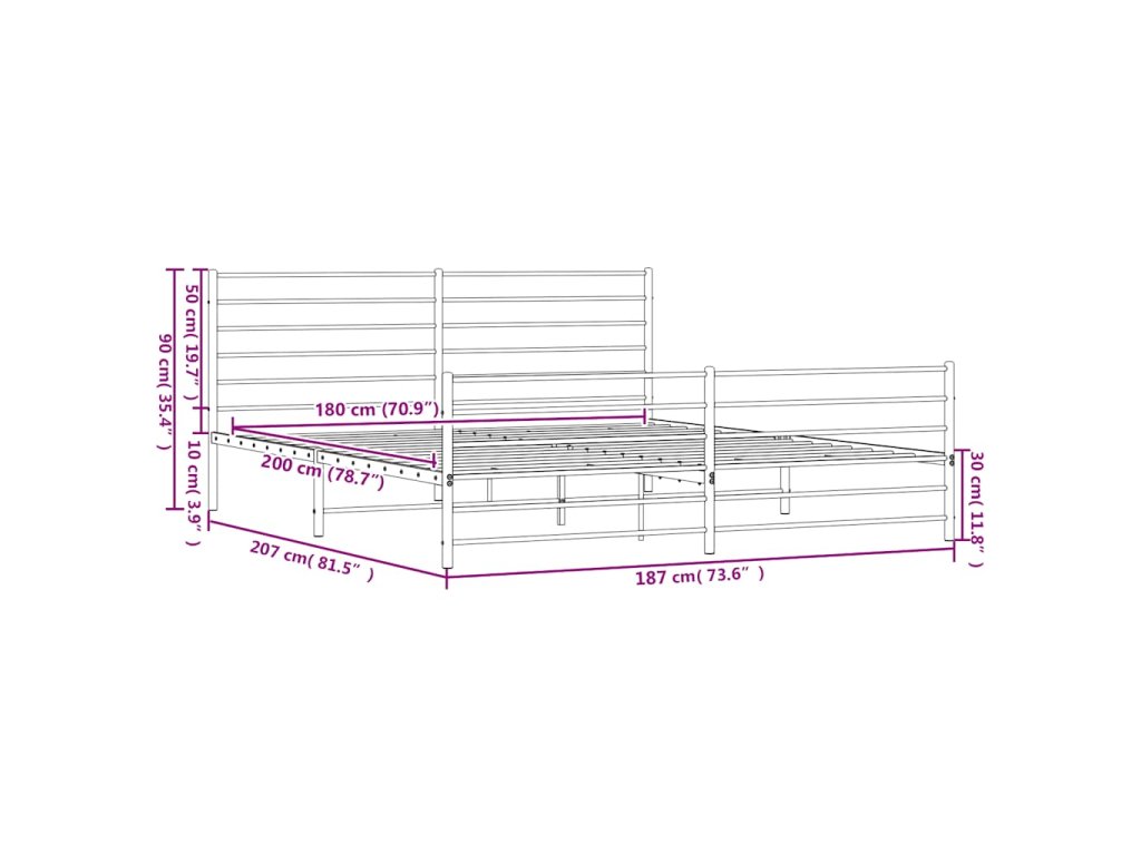 Kovový rám postele bez matrace s nožním čelem černý 180x200 cm 352341