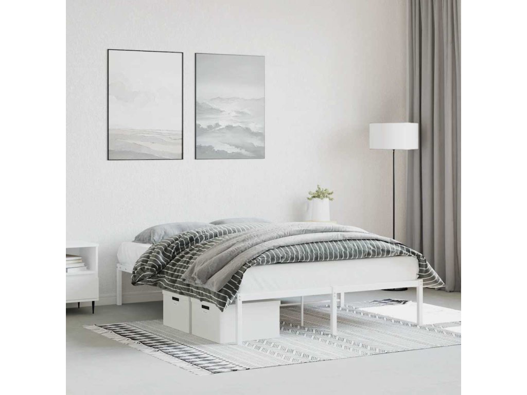 Kovový rám postele bílý 135 x 190 cm 373672