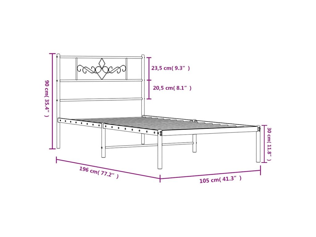 Kovový rám postele s čelem bílý 100 x 190 cm 355310