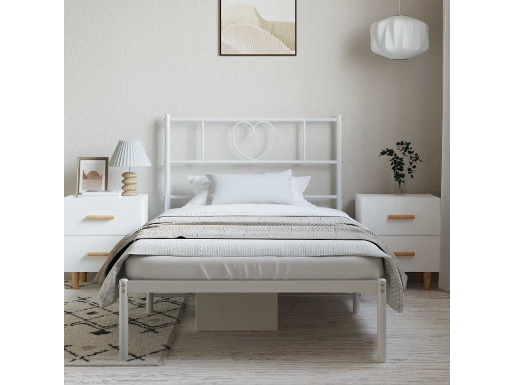 Kovový rám postele s čelem bílý 100 x 200 cm 355507
