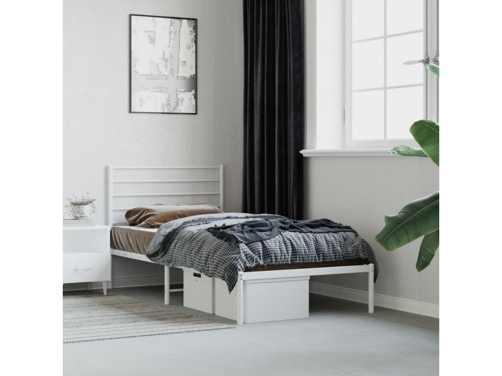Kovový rám postele s čelem bílý 107 x 203 cm 352364
