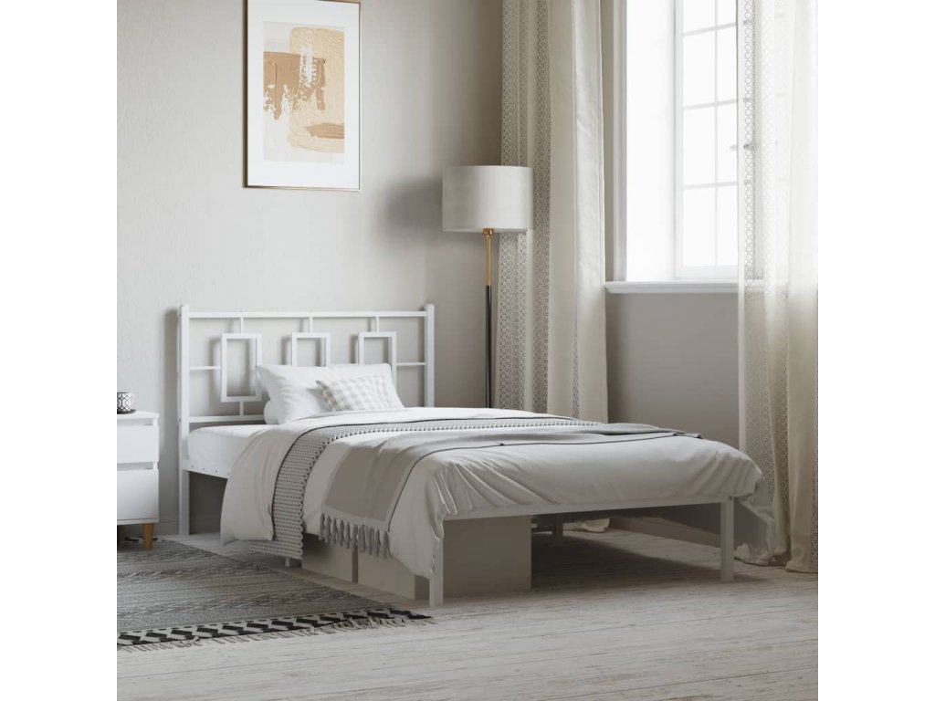 Kovový rám postele s čelem bílý 107 x 203 cm 374286
