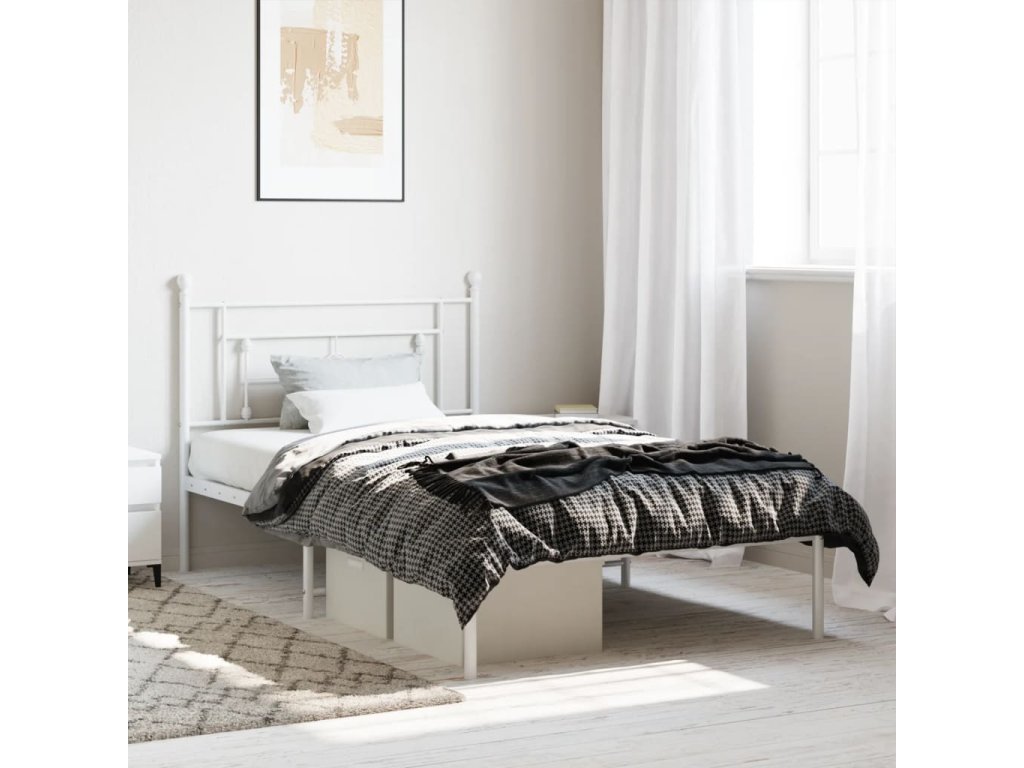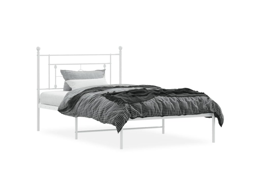 Kovový rám postele s čelem bílý 107 x 203 cm 374384