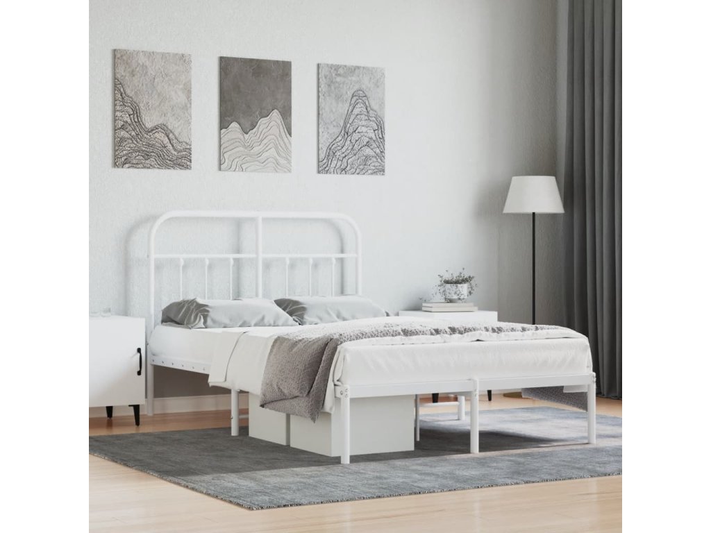 Kovový rám postele s čelem bílý 120 x 190 cm 352624