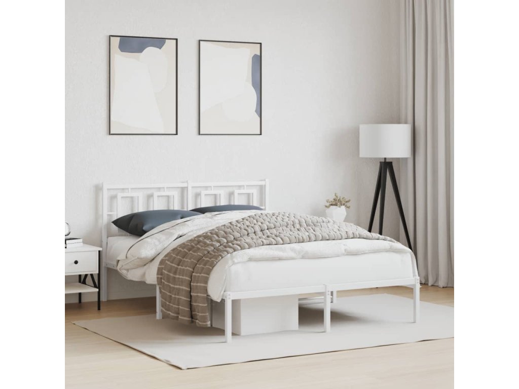 Kovový rám postele s čelem bílý 135 x 190 cm 374289