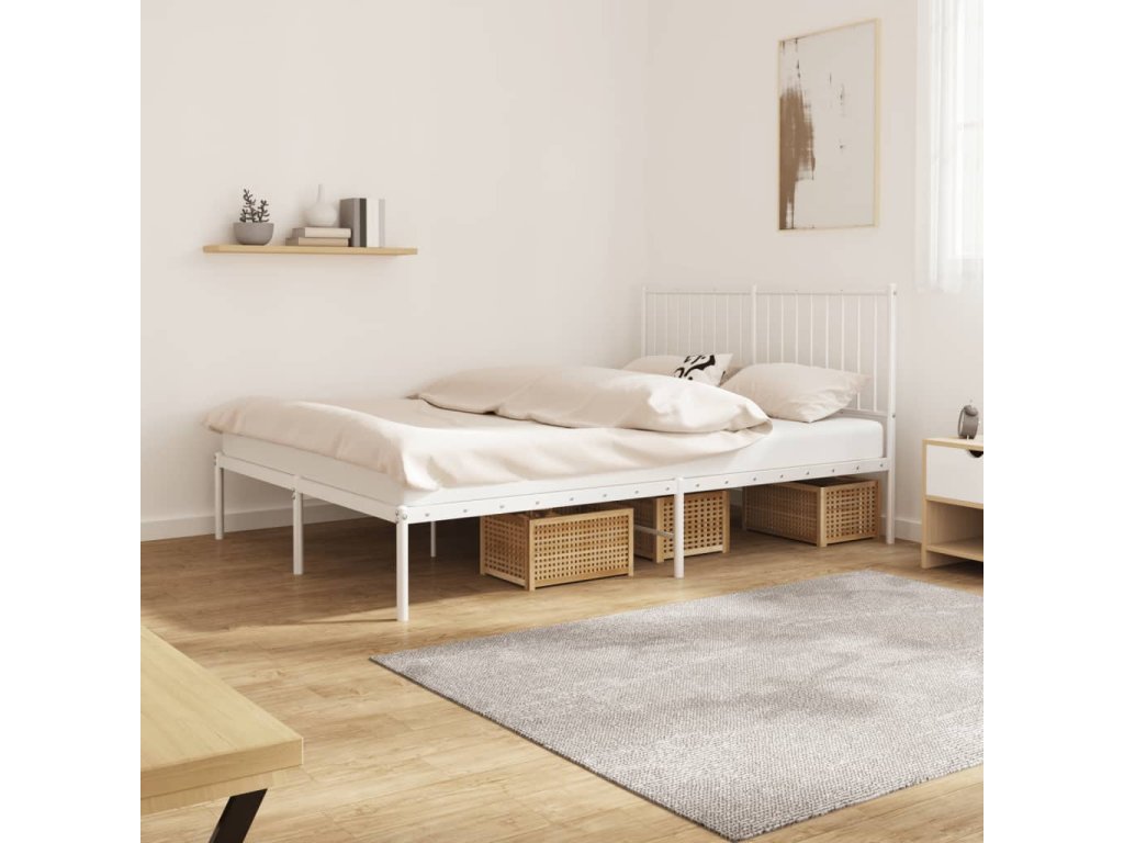 Kovový rám postele s čelem bílý 140 x 190 cm 350931