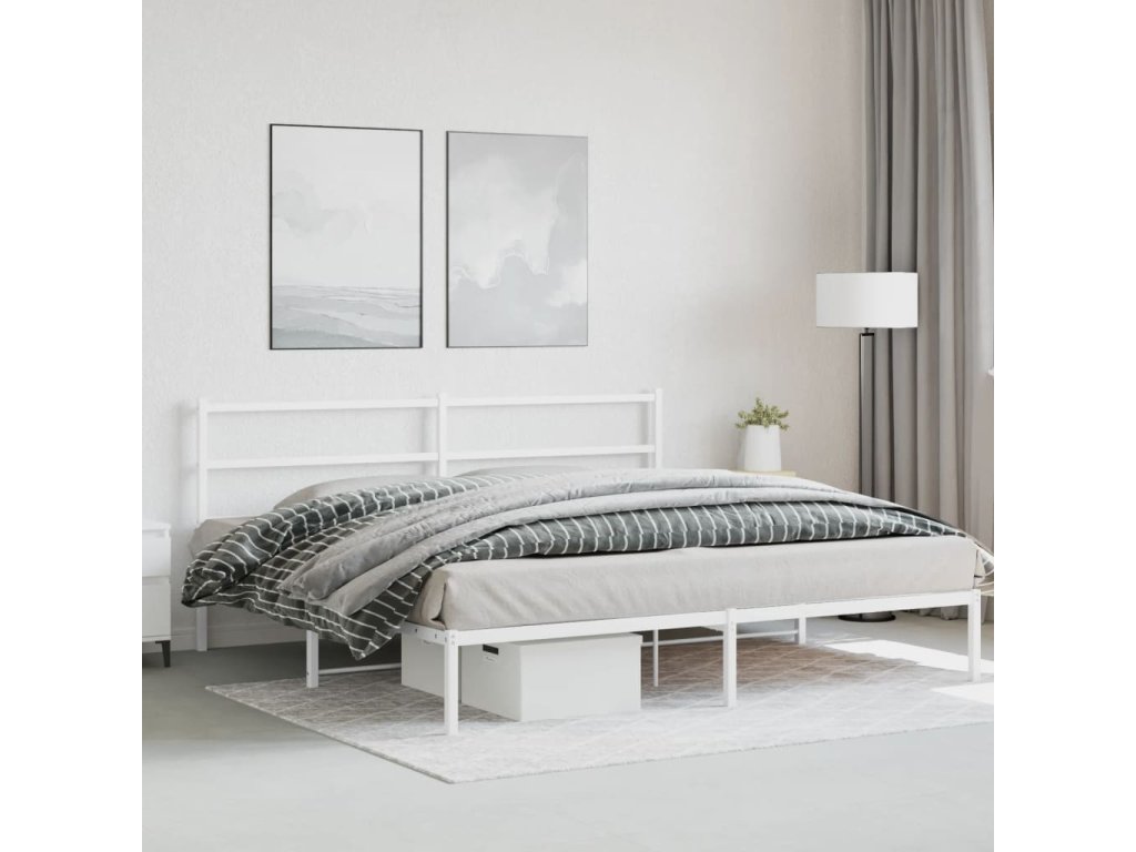 Kovový rám postele s čelem bílý 183 x 213 cm 355419