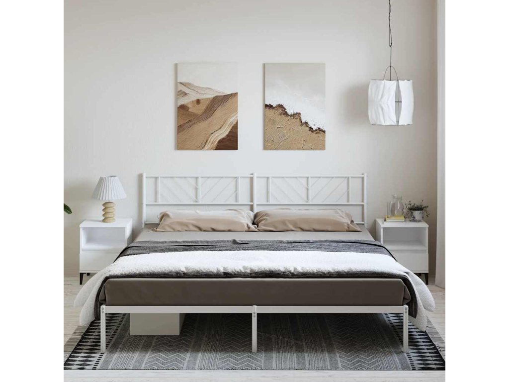 Kovový rám postele s čelem bílý 183 x 213 cm 372233