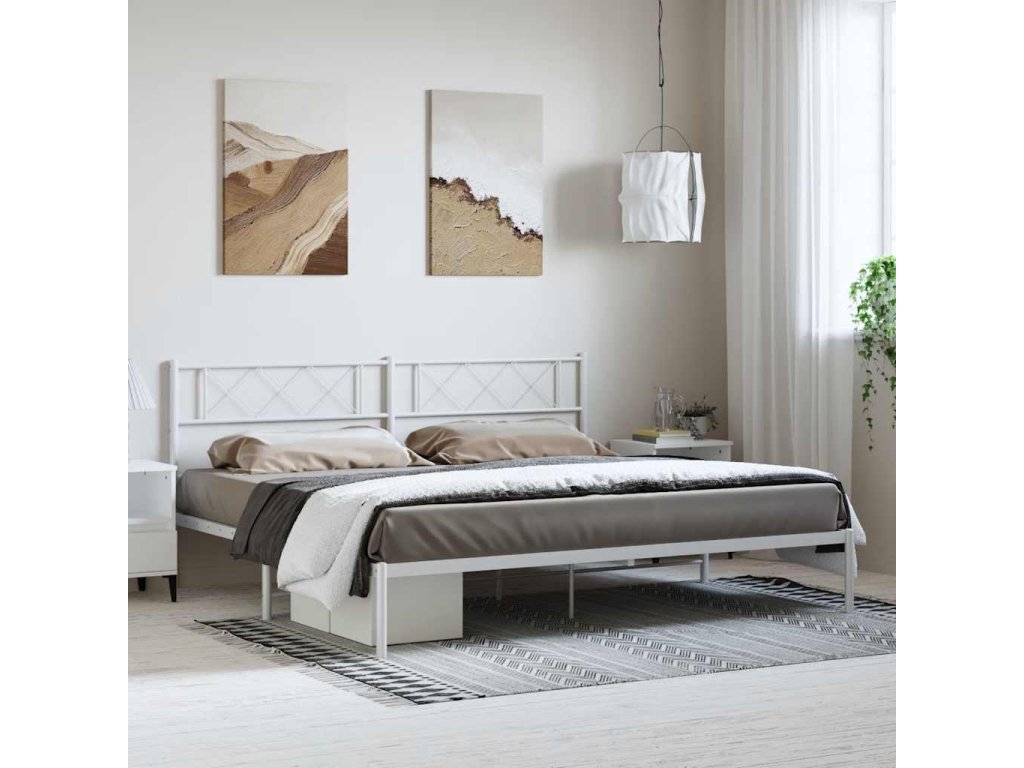 Kovový rám postele s čelem bílý 183 x 213 cm 372331