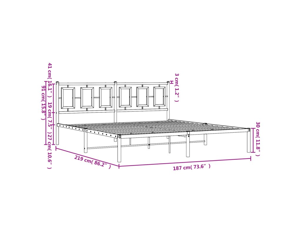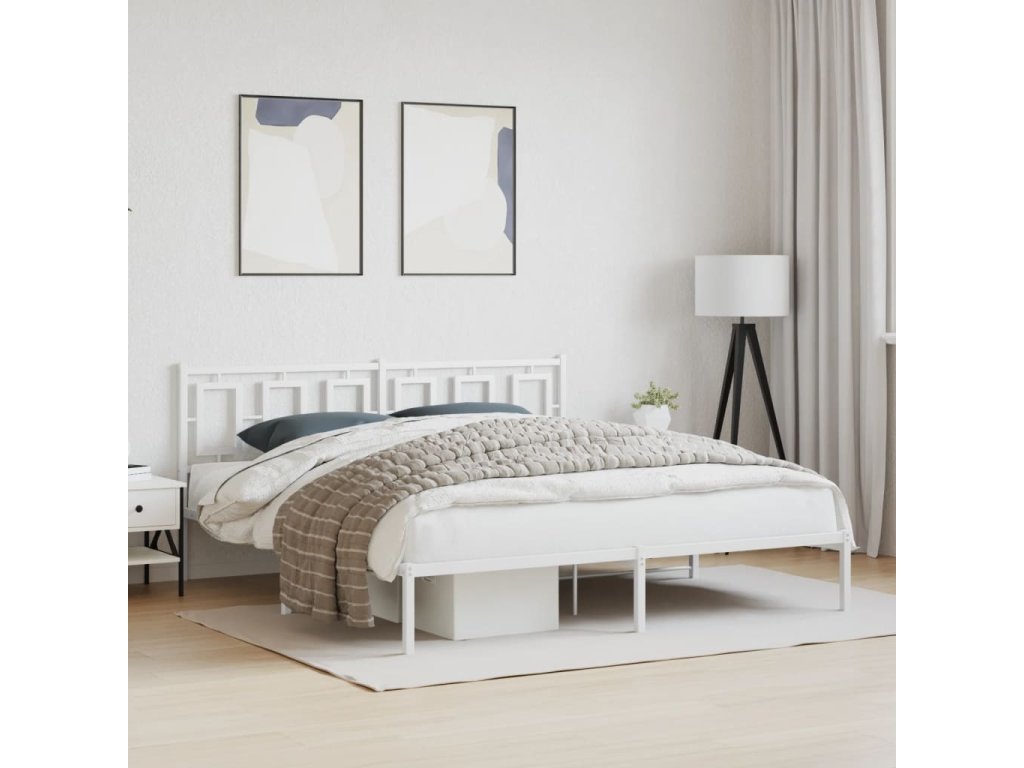 Kovový rám postele s čelem bílý 183 x 213 cm 374295