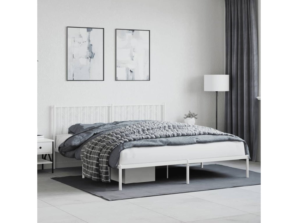 Kovový rám postele s čelem bílý 183 x 213 cm 374491