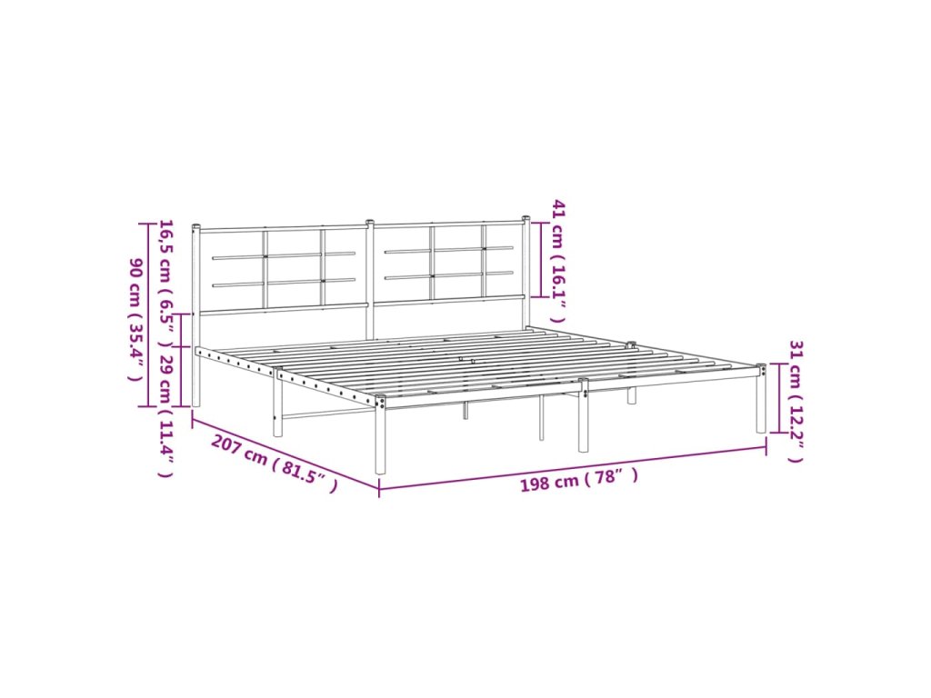Kovový rám postele s čelem bílý 193 x 203 cm 355616