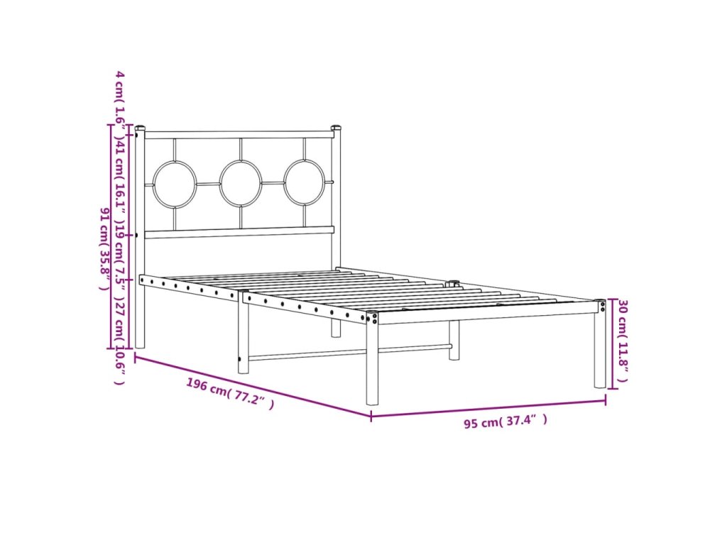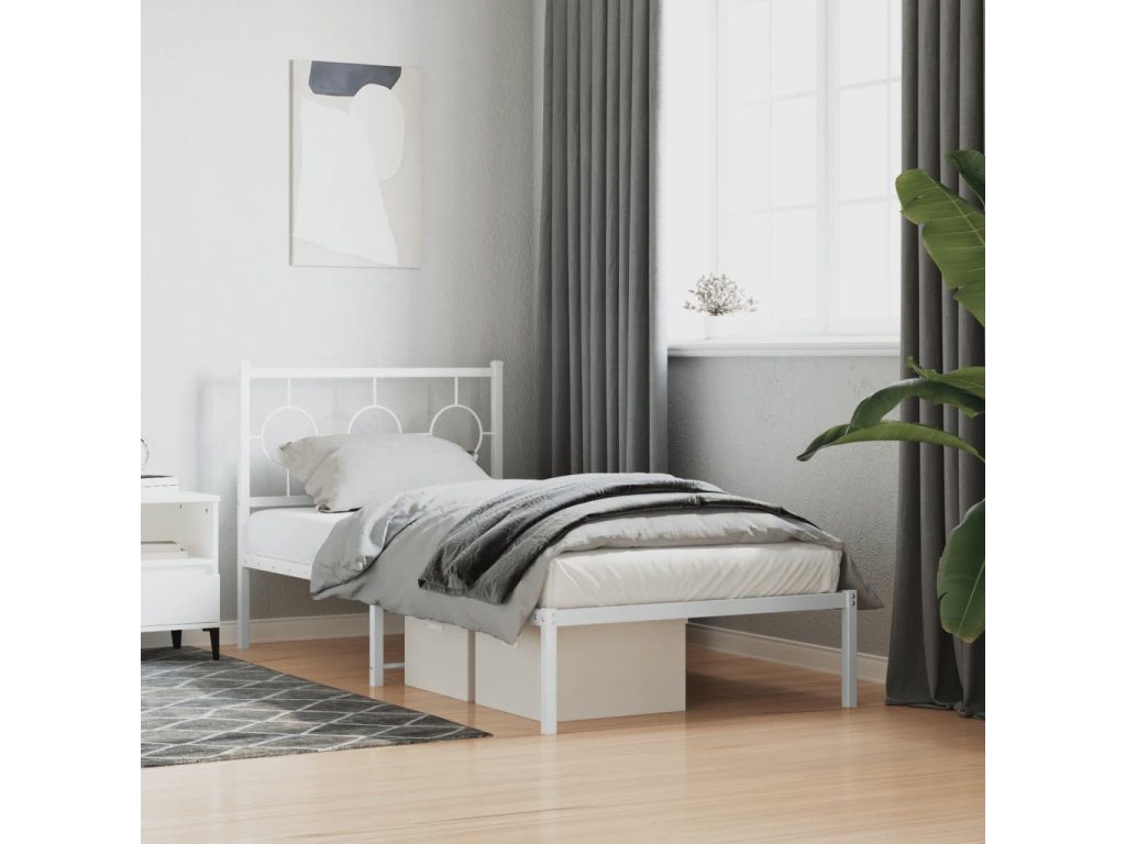 Kovový rám postele s čelem bílý 90 x 190 cm 376267