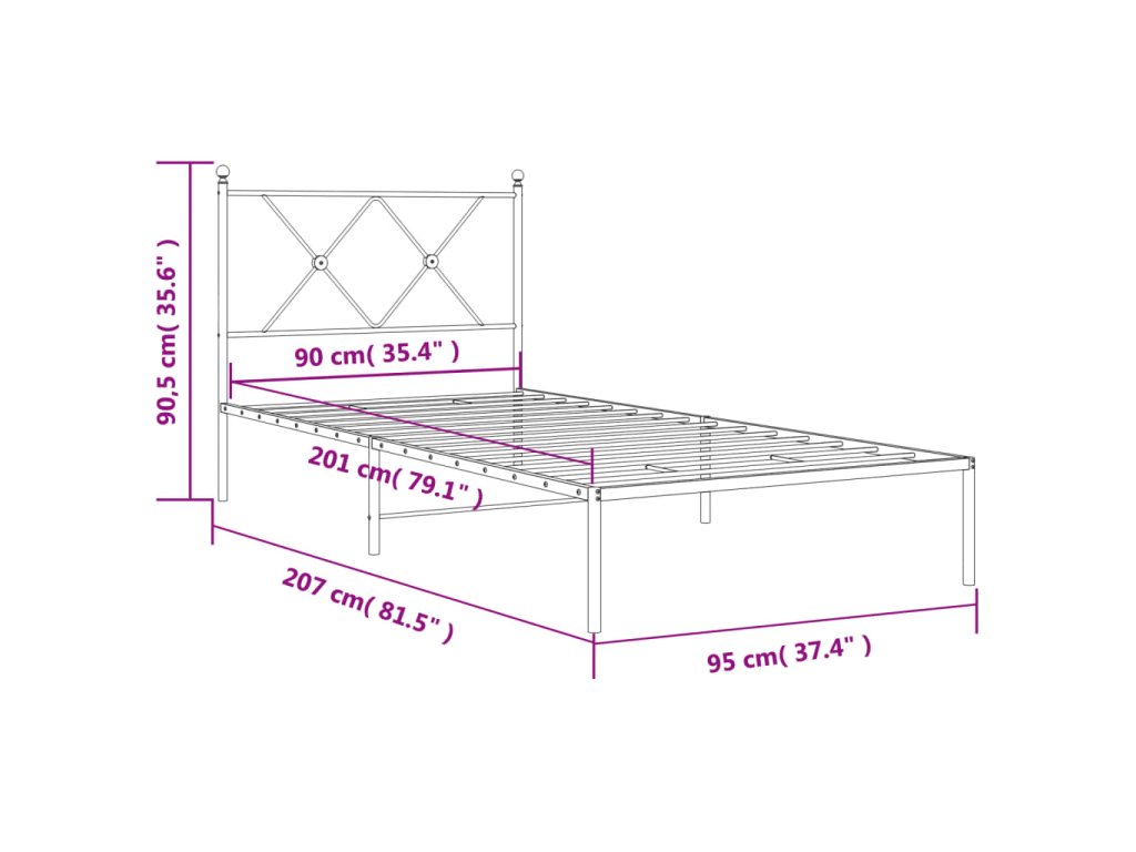 Kovový rám postele s čelem bílý 90 x 200 cm 376544