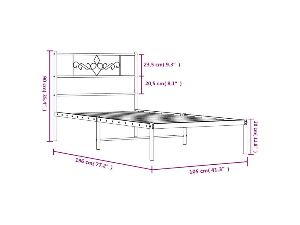 Kovový rám postele s čelem černý 100 x 190 cm 355261