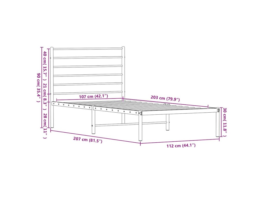 - Vhodné rozměry matrace: 107 x 203 cm (Š x D) (matrace není součástí balení)