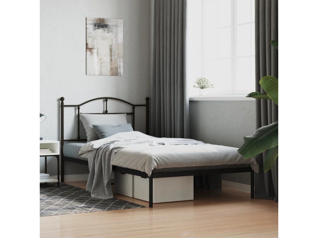 Kovový rám postele s čelem černý 107 x 203 cm 353435