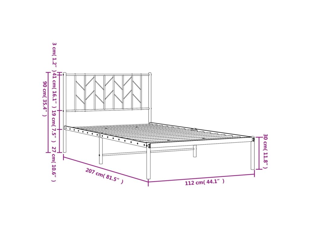 Kovový rám postele s čelem černý 107 x 203 cm 374433